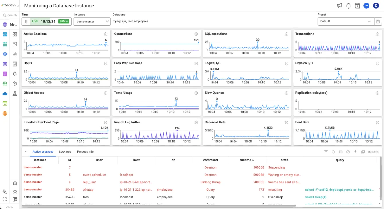 WhaTap Veritabanı İzleme, hem açık kaynaklı hem de Bulut veritabanlarının temel performans metriklerini kolayca takip etmenizi sağlar.